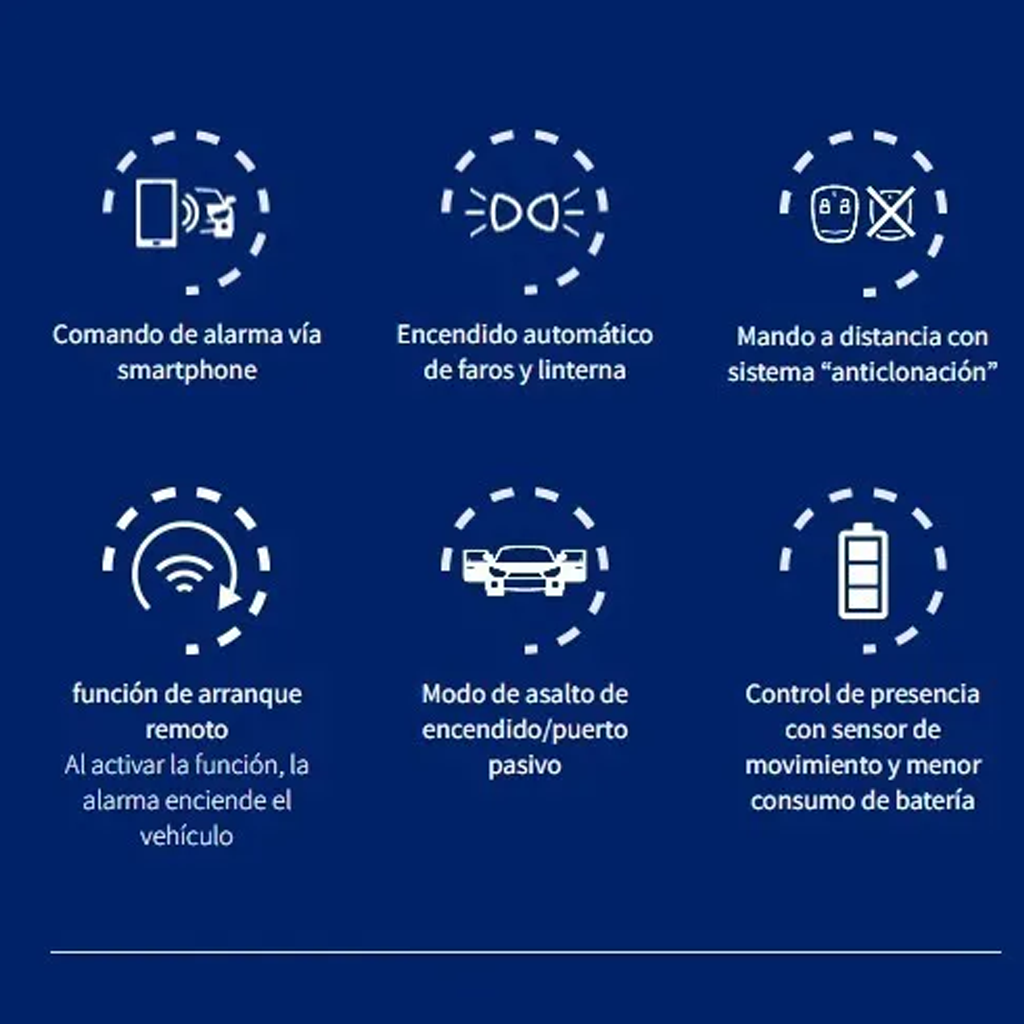 - Posibilidad de arranque a distancia del vehículo desde el control de la alarma!*