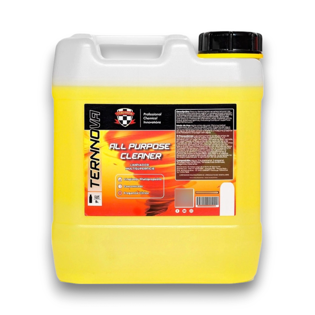 Limpiador concentrado para tapizados, plasticos y gomas del interior, plasticos de exterior, piezas de motor (desengrasante), buches, alfombras. Esencia: Cítrica.
