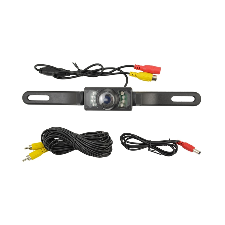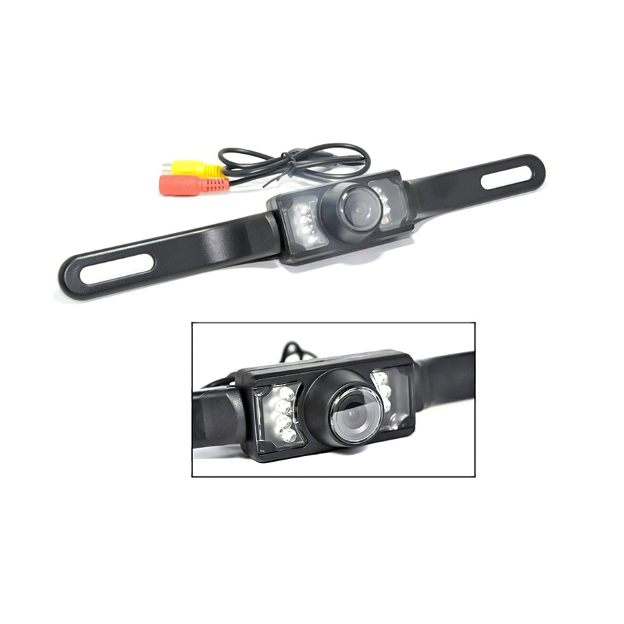 • Cámara a color de visión trasera, de respaldo con soporte para matrícula y 7 LED de visión nocturna