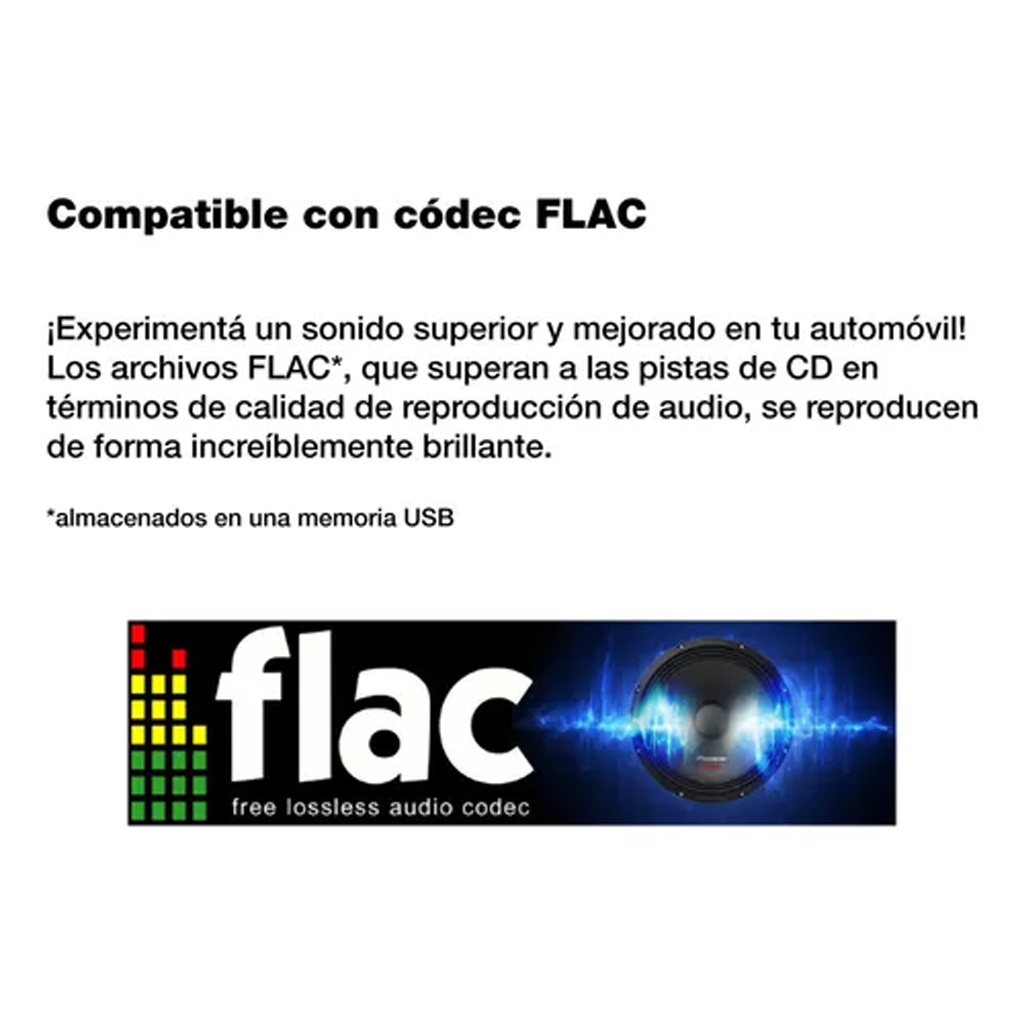 - Reproducción MP3, WMA, FLAC, WAV