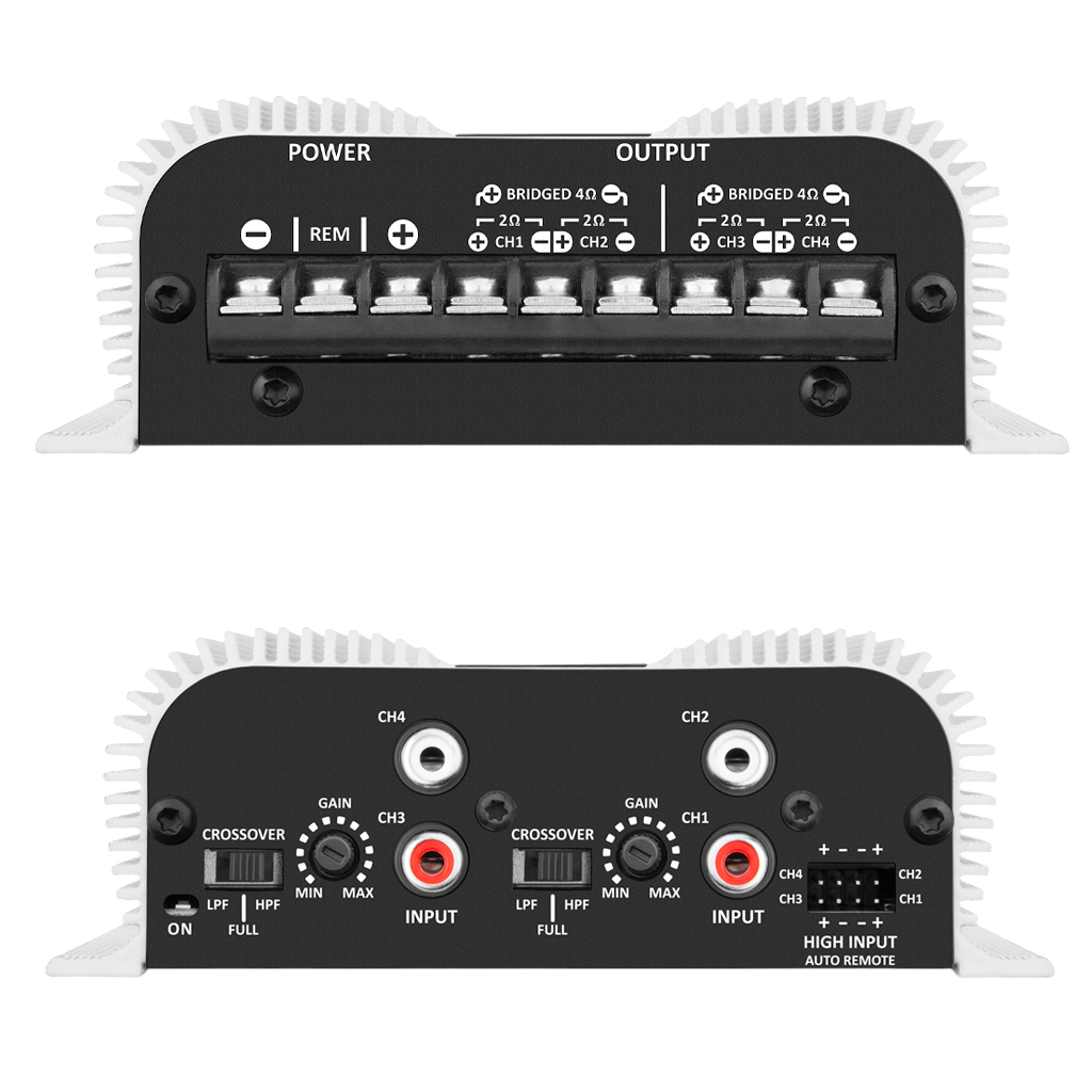 • @ 14,4 VCC – 2 ohmios: 400 W RMS (4 x 100 W RMS)