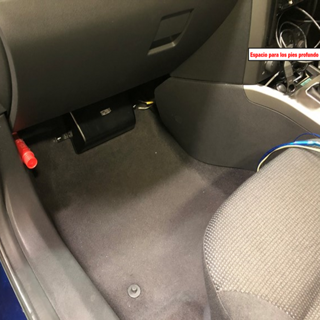 Tiene el tamaño ideal para instalarlo en el espacio del auto destinado para los pies. ¡No hay otro en su categoría con un tamaño tan accesible y compacto con amplificación Clase D de alto poder incorporado!